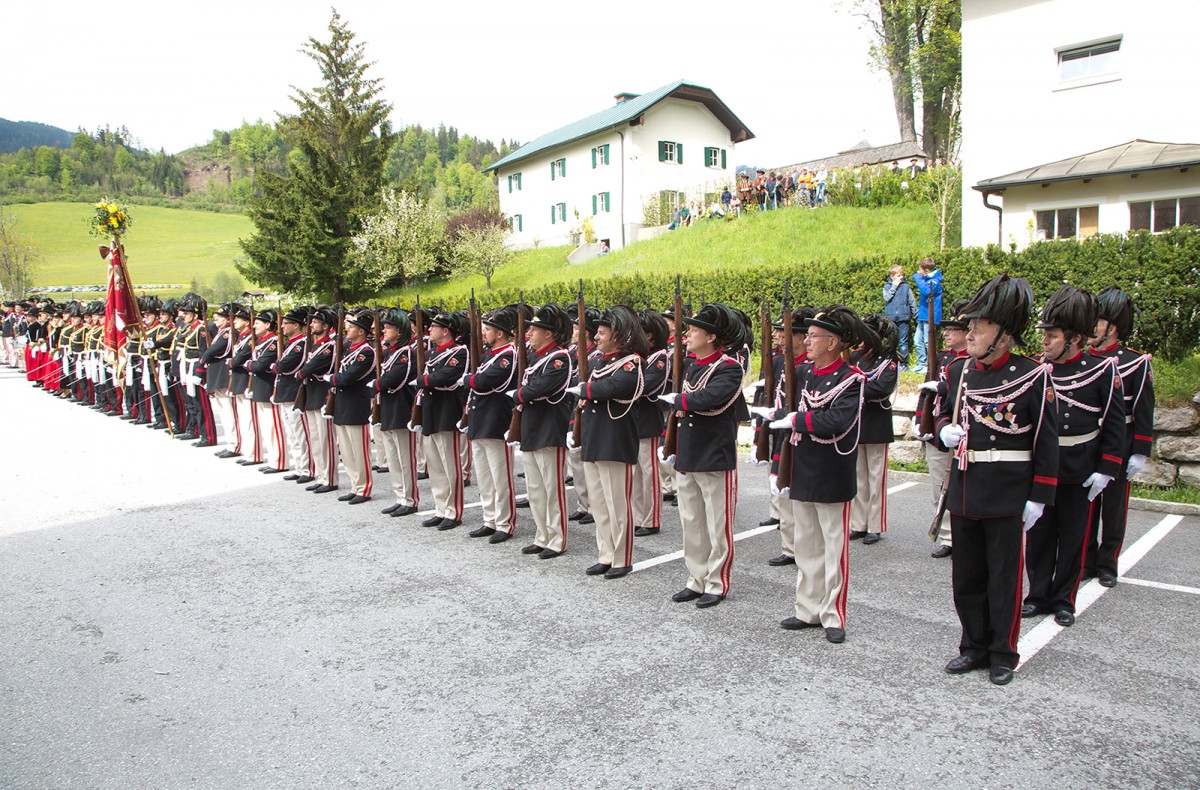 Aus diesem Grund feierten wir 425 Jahre Gründung und 40 Jahre Wiedergründung im Jahr 2018 mit einem großen Jubiläumsfest mit dem Pongauer Salvenwertungsschießen am Samstag, dem 15. September und mit dem Fest der Uniformen am Sonntag, dem 16. September.