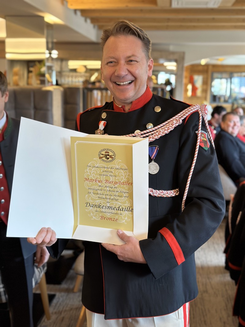 Sepp Obermoser, Ehrenhauptmann der Goldegger Schützen, Kassier im Bezirksverband, Rechnungsprüfer im Landesverband
